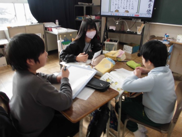 国語では、相手や場面に応じた言葉遣いについて学習しています。今回は、1年生に伝わる文章にするためにはどのような工夫が必要か、自分で考えた文章は本当に伝わるかをグループで話し合いました。相手の立場...