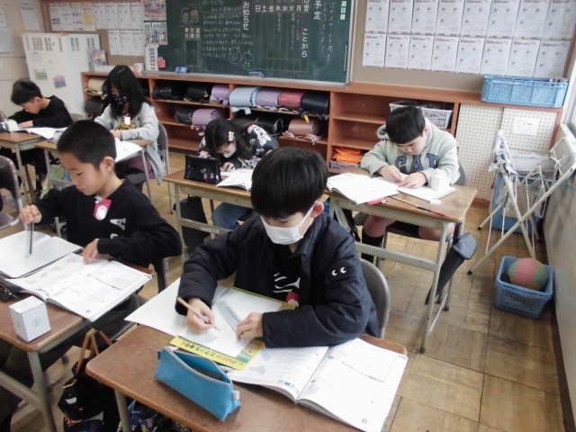 算数で立体の見取り図をかく学習をしました。国語では調べたことをもとに話すために、グループで話し合いをしました。外は雨の音がしています。子供たちは落ち着いて学習に取り組みました。
