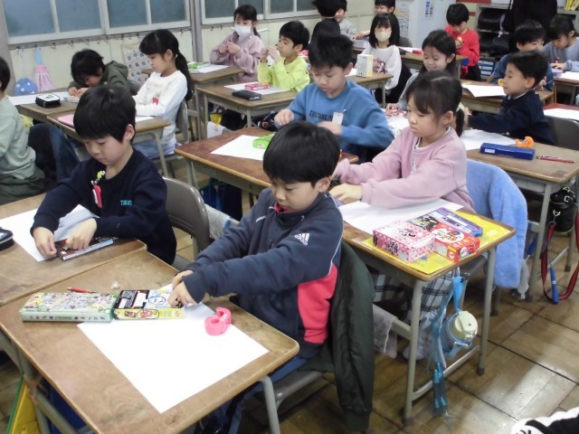 算数で、箱を使って面の数や面の形を考える学習をしました。目の前に具体的なものがあると、イメージしやすく学習作業がはかどる子が多いようです。