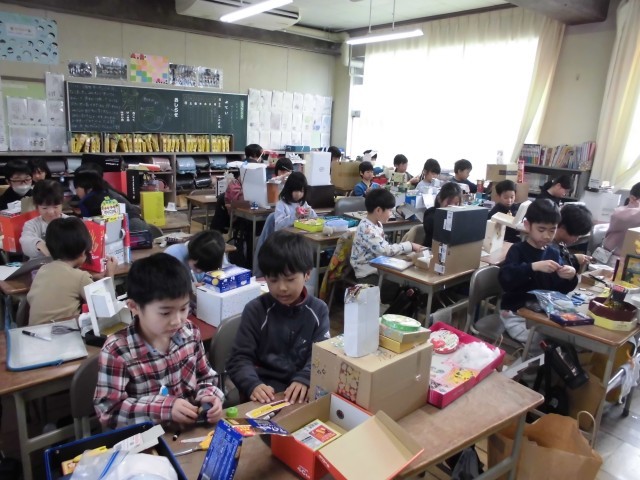 今日の図工は、楽しみにしていた、友達の「ともだちハウス」へ自分で作った友達と一緒におじゃまさせてもらう授業でした。1時間目は、お客さんを呼ぶために家の手直しをして、2時間目はいざ友達の家へ!ブランコや...