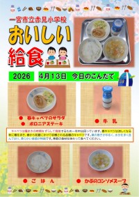 今日から給食がスタートしました。今年から毎日会食を行うことを伝えると子どもたちは、大喜びでした。初日でしたが、給食の準備や片付けをとても手際良く行うことができ、感心しました。会食を通して学級の絆を更に...