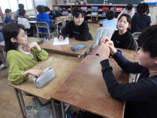 今日は5月1日のペア活動に向けて3年生と一緒に遊ぶゲームを班ごとに考えました。3年生にするゲームの説明や役割なども考え、高学年として自分たちで進められるように話し合っています。明日はペアの顔合わせがあ...