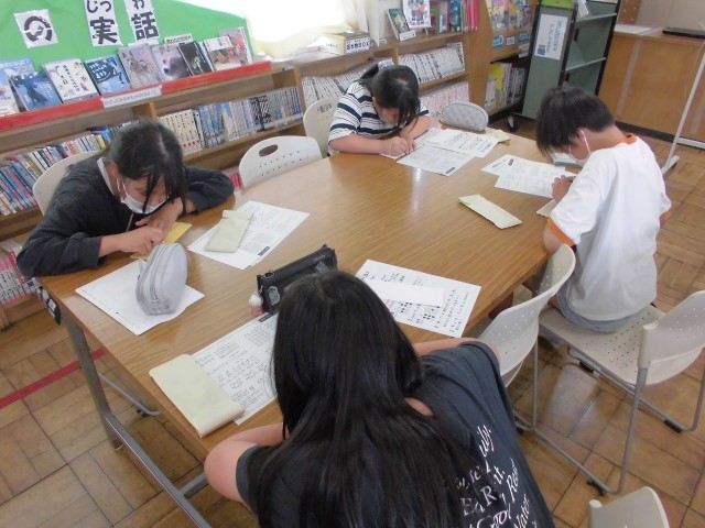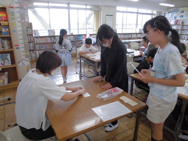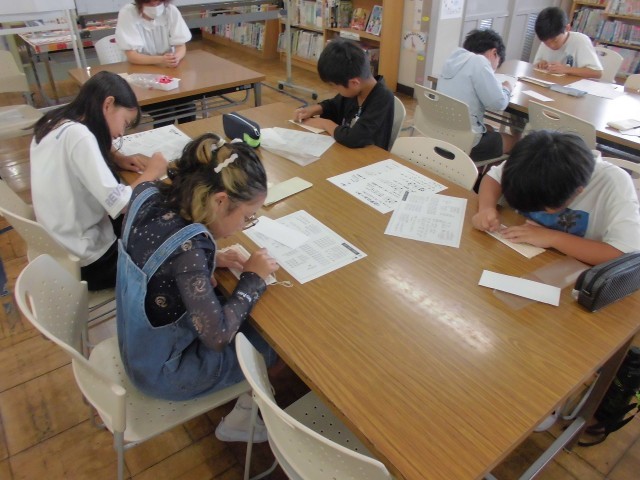 点字の講座では、点字一覧表を見ながら自分の名前や自己紹介、好きなものを打ち、講師の先生に読んでいただきました。また、2分間で何マス分点字を打つことができるかみんなでチャレンジし、一番多い子は34マス打つことができました。