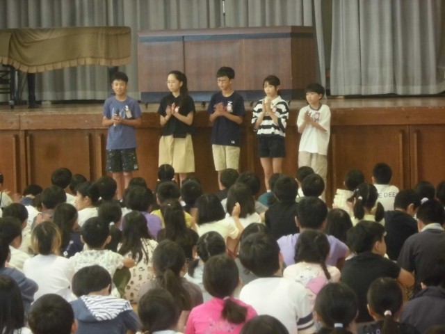 まずは、前期の期間、学校やクラスの代表として頑張ってくれた児童会・代表委員・学級委員の皆さんありがとうございました。