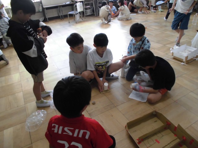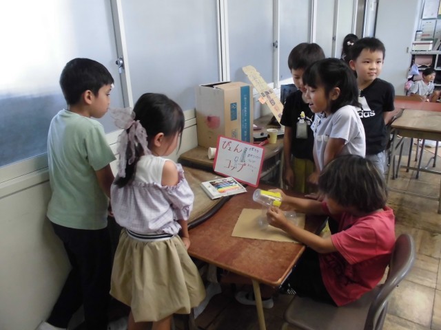 おもちゃを作った友達から、遊び方の説明を聞き、楽しそうに交流していました。