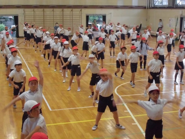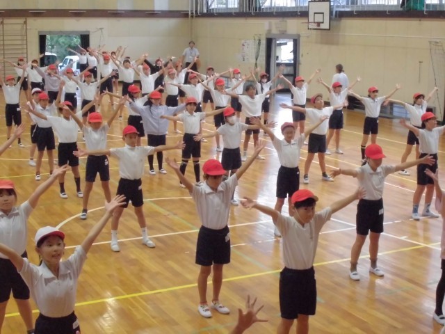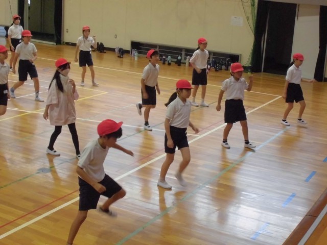 午後から雨が降ってしまったので、体育館でダンスや隊形の練習をしました。