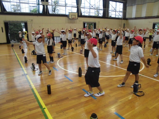 今日は、入場する時のダンスの振り付けを練習しました。列ごとにタイミングが違い、難しい部分もありましたが、どの子も先生の指示をよく聞いて真剣に取り組むことができました。