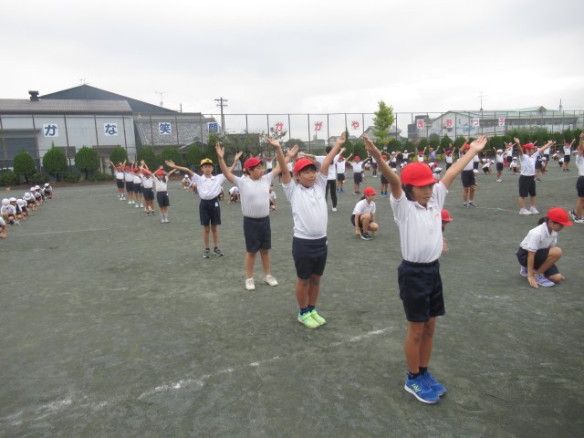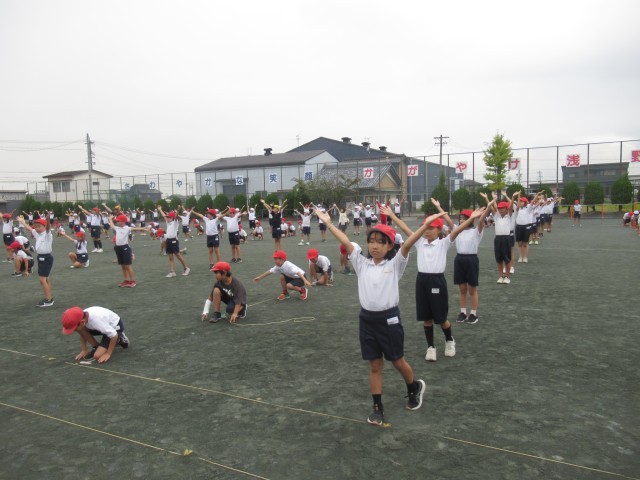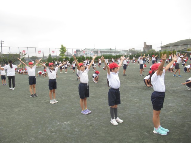 曇り空のした、ソーラン節の練習をしました。伸ばした腕や伸びた指先から、子どもたちのやる気が伝わってきます。