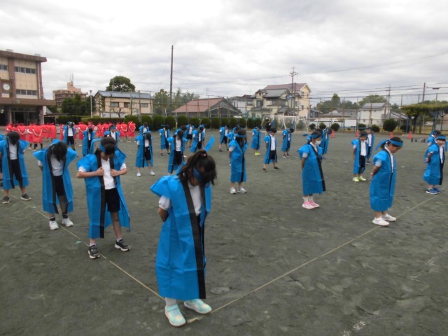 今日の運動会練習では、衣装を着て本番と同じように通しました。今までの練習の中で、一番声が出ていてかっこよかったです。本番に向けて、さらにレベルアップできるように、明日以降も全力で練習しましょう。