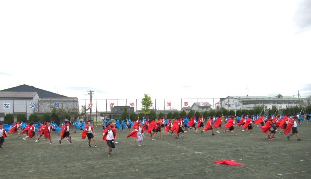 今日は、法被を着て練習をしました。運動場に赤と青の法被が広がり、一体感がありました。本番まであと2日。まだまだ頑張る子どもたちを応援しています。