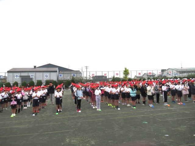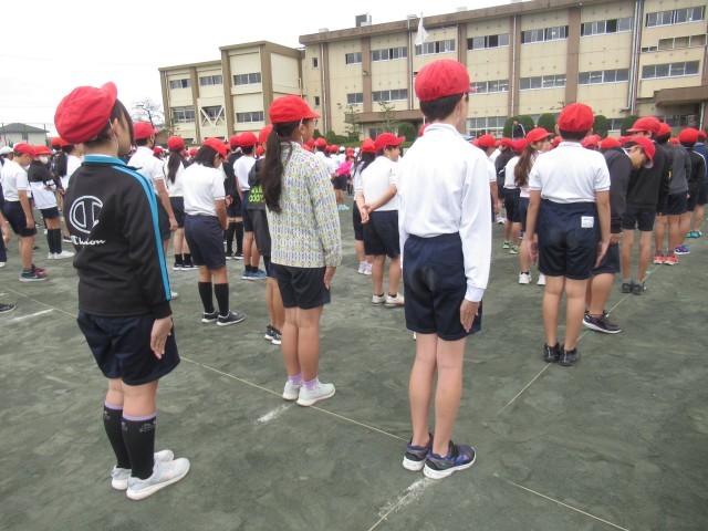 1時間目は、運動会の開閉会式の練習をしました。指先までピンと伸ばした「気をつけ」から、やる気が伝わってきます。