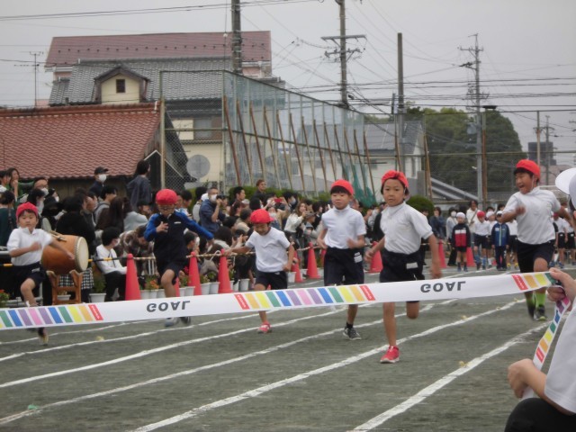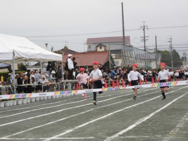 徒競走(40m走)では、ゴールまで、全力で駆け抜けました。