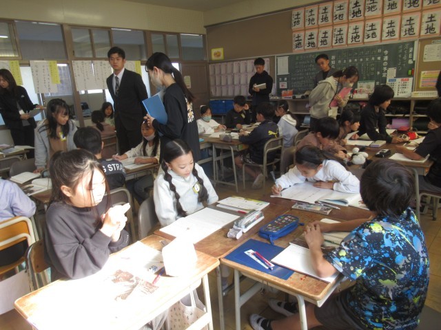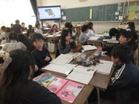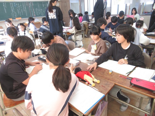 今日は、4年3組で国語「ごんぎつね」の研究授業を行いました。登場人物のごんと兵十の気持ちが読み取れるところに線を引いたり、グループで話し合ったりする活動を通して、ごんと兵十の気持ちを読み取りました。子どもたちはとても真剣にとりくんでいました。