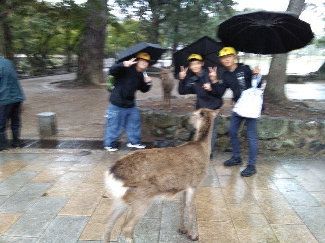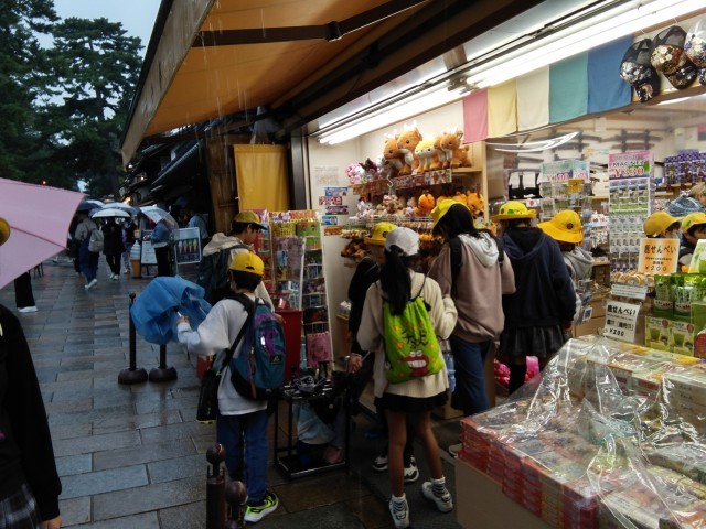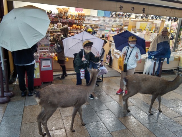 短い時間でしたが、買い物を楽しみました。店の前には、鹿がたくさんいて、買ったお土産を狙われている子もいました。雨の中たくさん歩いたので、疲れました。宿でゆっくりと過ごしたいと思います。