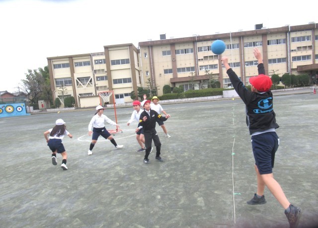 今日の体育の授業は、2回目のセストボールの練習です。今回は、パスの練習をした後、ゲームもしてみました。いかに、ボールをパスしてもらえるところに動くかが大切です。みんな、よく動いていました。