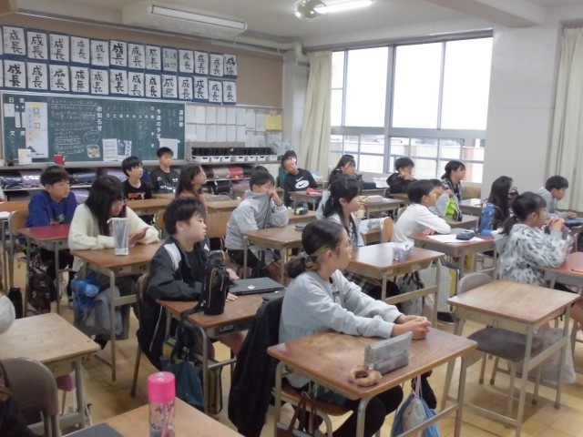 そのあとに、5年生でのオンライン集会もしました。木曜日の校外学習や、防寒具のルールについてお話を聞きました。