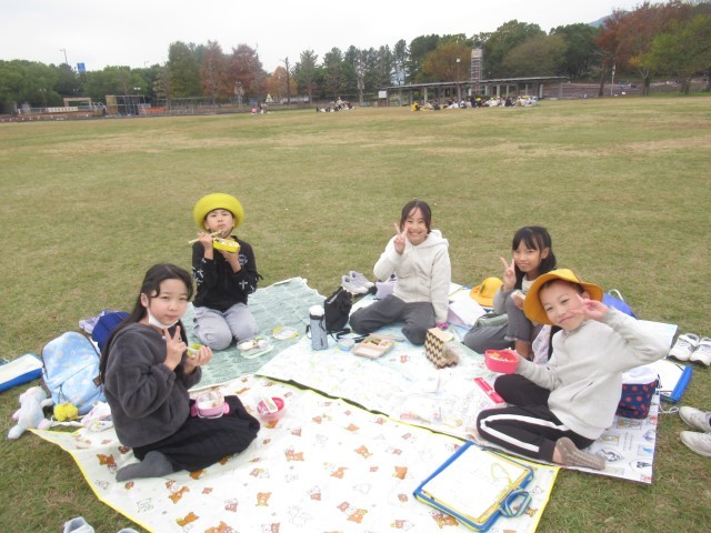 待ちに待ったお弁当の時間。子どもたちは、お家の方に作ってもらったお弁当をとてもうれしそうに食べていました。朝早くから準備していただいき、ありがとうございました。お弁当とともに、楽しい思い出ができたことと思います。