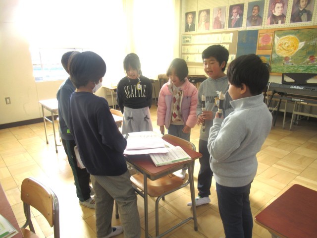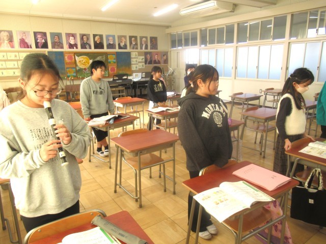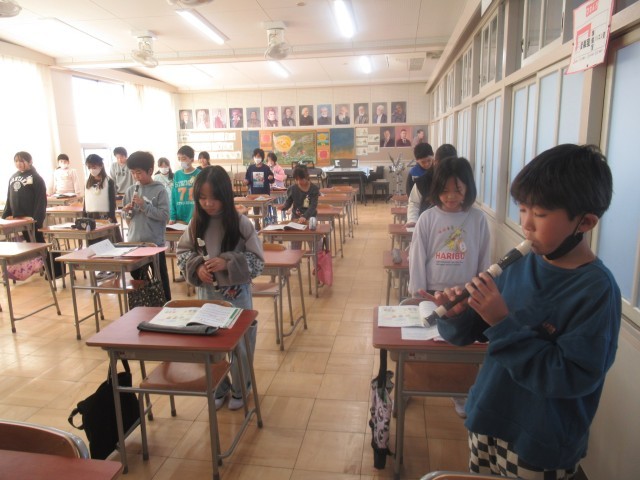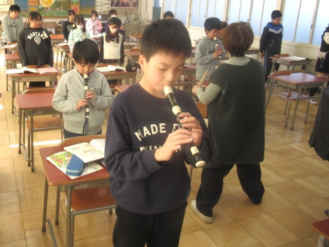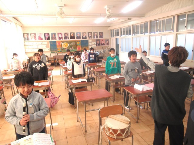 今日の音楽の授業では、太鼓やリコーダーを使ってソーラン節を演奏しました。