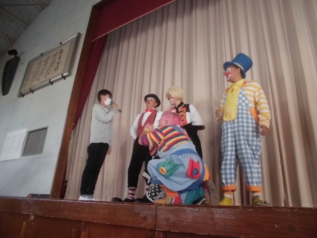 今日は、プレジャーbのクラウンの方々に来ていただき、芸術鑑賞会が開かれました。