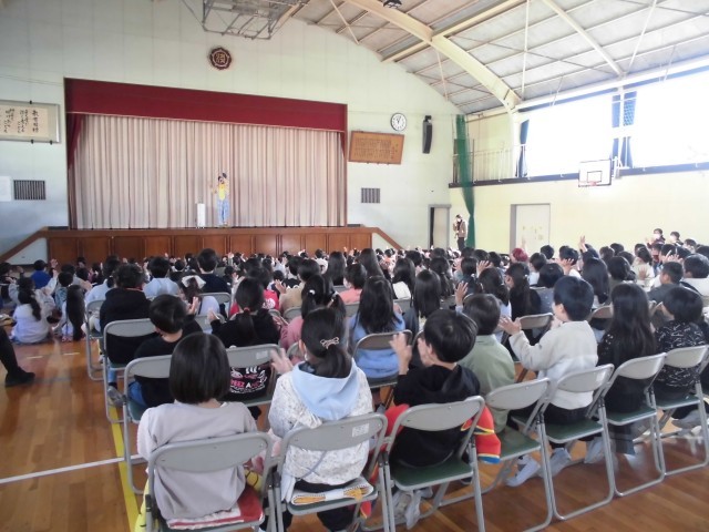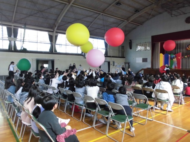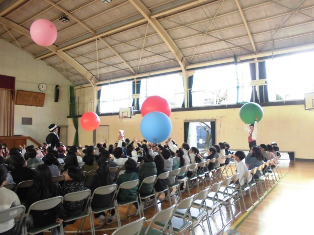 今日は、芸術鑑賞会がありました。お皿やボール、自転車など、様々なものを使ったパフォーマンスを見て、子どもたちはとても楽しそうでした。