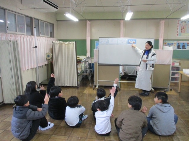 測定の後に保健の先生からお話があり、今まで教えてもらった「歯磨きの習慣」についてのクイズに挑戦!!