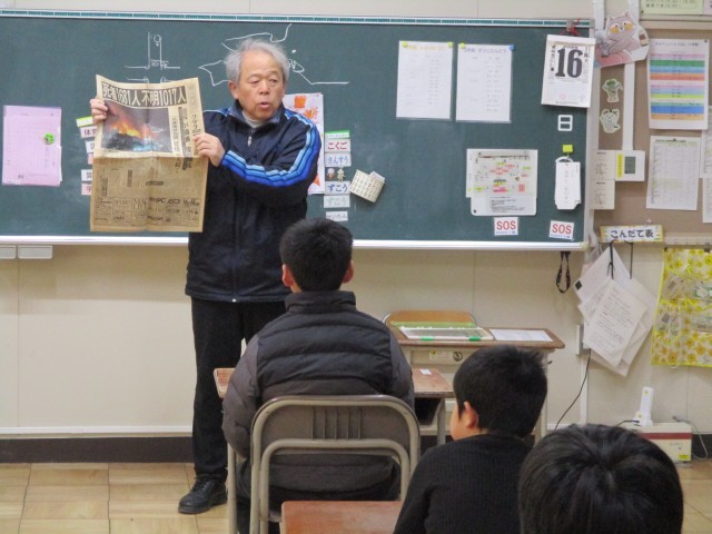 先週の金曜日、たけのこ学級の先生が1995年1月17日に起こった阪神・淡路大震災の当時の新聞記事を持ってきてみんなに見せてくれました。