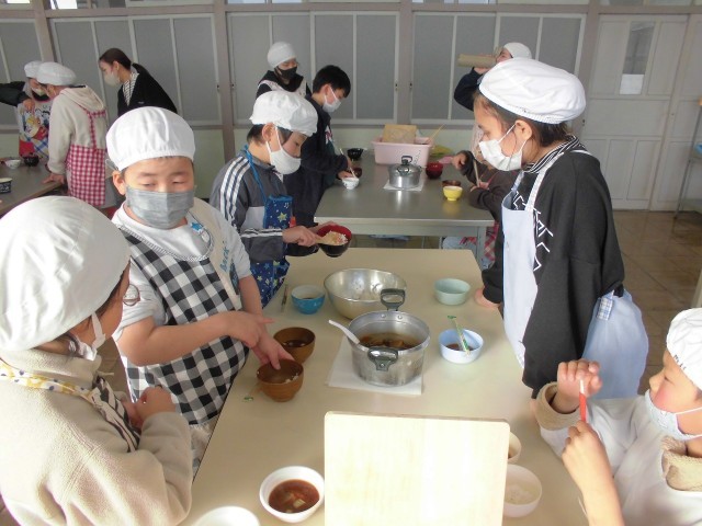 家庭科の授業でご飯とみそ汁の調理実習を行いました。