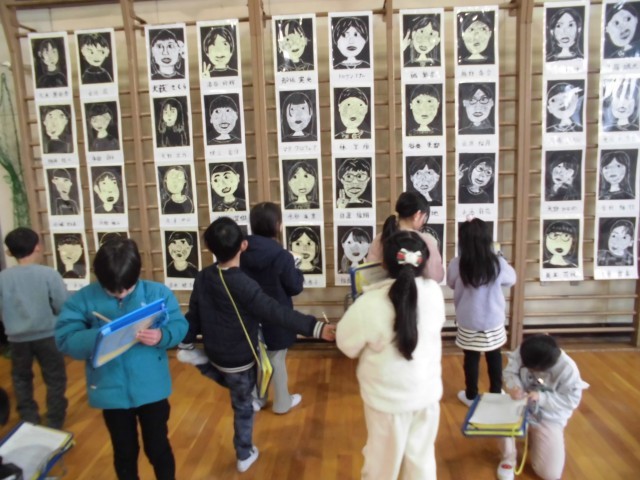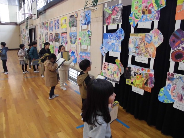 浅野っ子展の鑑賞をしました。ほかの学年の作品を見て、良いところをたくさん見つけることができました。