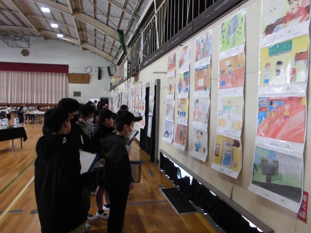 自分の作品だけでなく、他のクラスの作品や他の学年の作品を鑑賞しました。