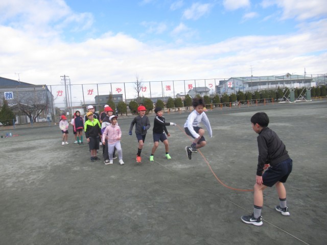 今日の体育の授業は、明日の縄跳び授業公開に向けて練習をしました。お家の方々に日頃の努力の成果を見てもらおうと張り切っています。どうぞ、楽しみにしていてください。