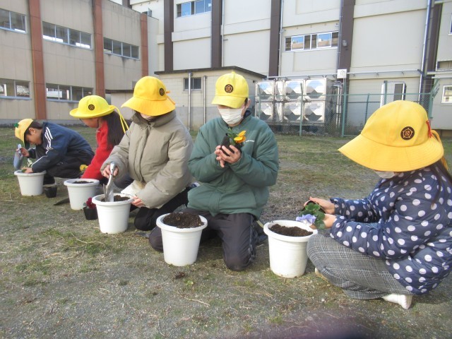4学年 1月28日(水) パンジーを植えたよ!