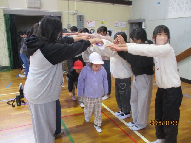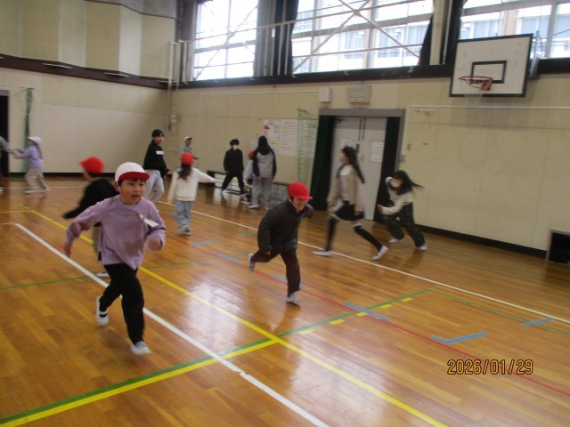 今日は1組が6年生とペア遊びをしました。王様ドッジボールとしっぽとりをしました。6年生のお兄さん、お姉さんが1年生でも楽しめるように、いろいろルールを考えてくれ、一緒に楽しく遊ぶことができました。