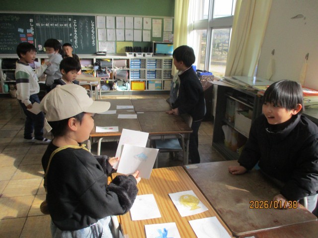 国語の時間に物の名前について学習し、その学習をいかしてお店屋さんごっこをしました。お店屋さんになって商品を売ったり、お客さんになって商品を買ったりして、楽しく取り組むことができました。