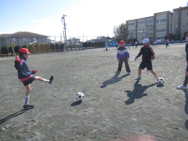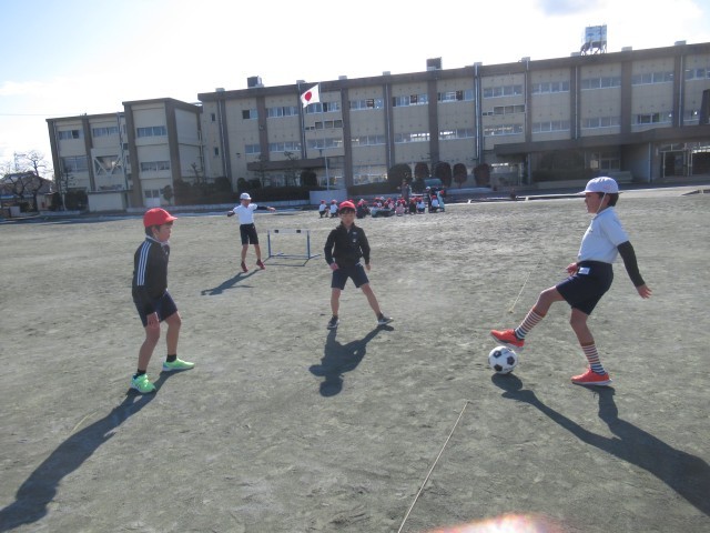 寒い日となりましたが、子どもたちは楽しそうにボールを追いかけたり、けったりしながら、サッカーの練習を頑張りました。