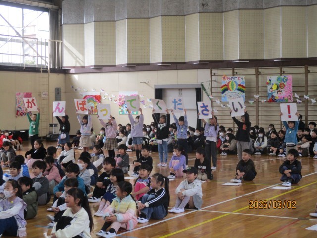 今日は卒業生を送る会がありました。今まで練習した成果を出せるよう、大きな声でメッセージと歌を発表しました。みんなのお祝いと感謝の気持ちが、6年生に伝わったと思います。他の学年の発表も見ごたえがあり、とてもいい会になりました。