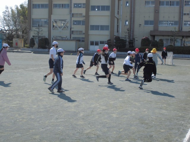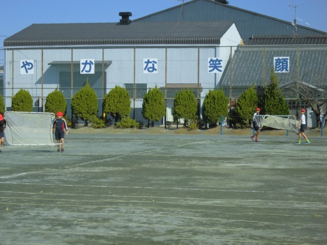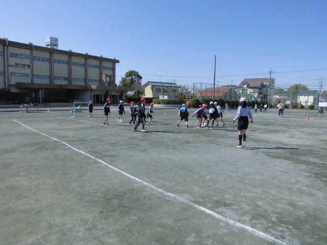 また、外の体育の授業ではサッカーをしています。パスやドリブルにも慣れてきて、ゲームを楽しむことができています。