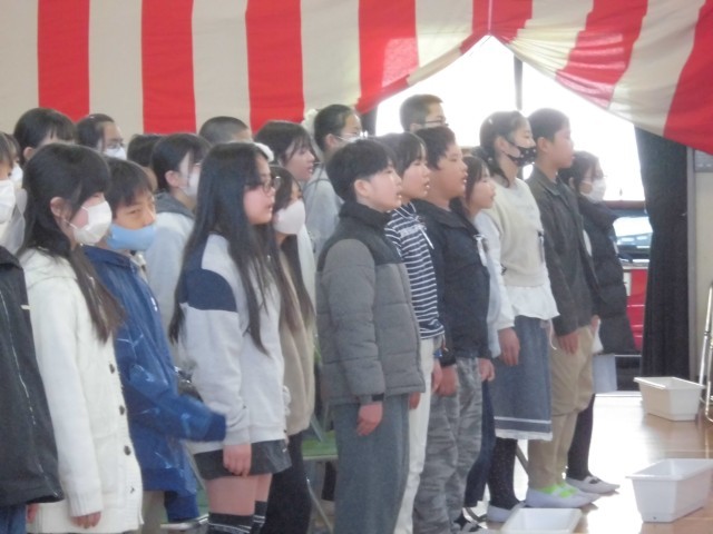 式の流れを確認しながら、呼びかけや合唱、拍手もしました。