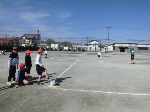 今日は晴天の中、全力でキックベースボールの試合に取り組みました。大きな声で挨拶をしてから始めたり、同じチームの仲間にアドバイスをしたりする姿がたくさん見られました。授業の後は、すばやく後片付けをしてくれました。「明日も試合したい!!」と、どの子もやる気満々で明日も楽しみですね。