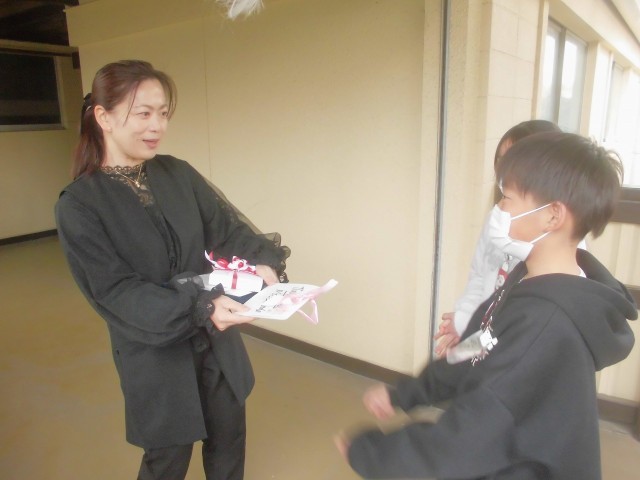 学年で全員で書いた手紙を、各クラスの学級役員が代表して渡しに行きました。