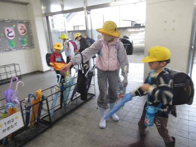 今日はあいにくの雨降りとなりましたが、傘をさしながら安全に登校し、無事に教室までたどりつくことができました。