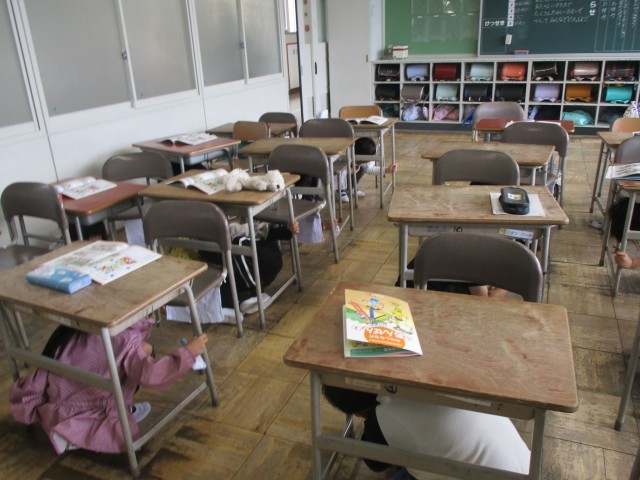 避難訓練では、避難の仕方について「わたしたちの安全」を用いて学習をしました。