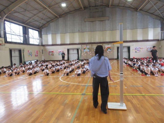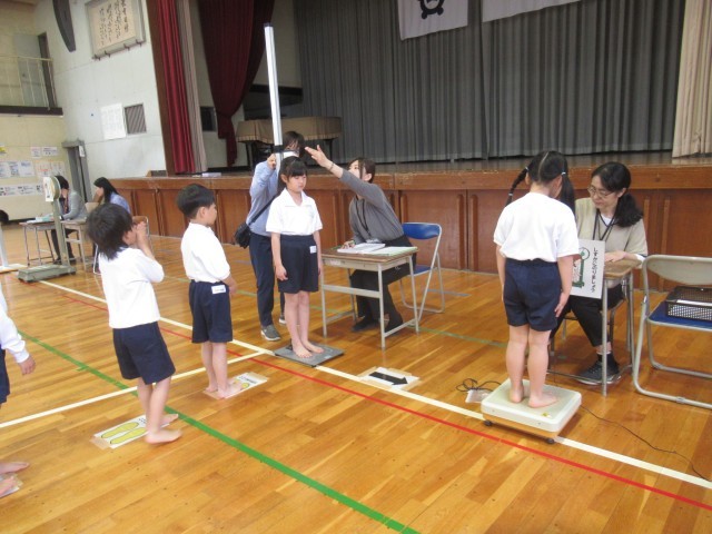 今日は、身長と体重を測定しました。2年生と一緒に行いましたが、2年生を見習って静かに待つことができました。測ってもらうときに「おねがいします」、終わったときに「ありがとうございました」とちゃんと言える子がいて感心しました。