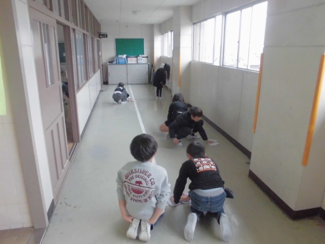 「だまって」「すみずみまで」「時間いっぱい」を目標に、学校をきれいにするとともに、自分の心もきれいにしていきます。