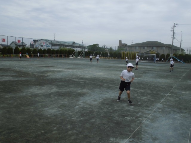 みんながしっかりと話を聞いて、てきぱき行動することができたので余った時間で学年でおにごっこをしました。