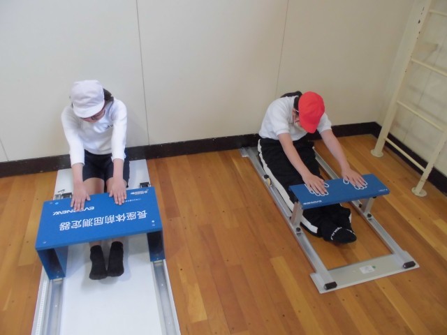 今日は、長座体前屈と立ち幅跳び、反復横跳び、上体起こしを行いました。