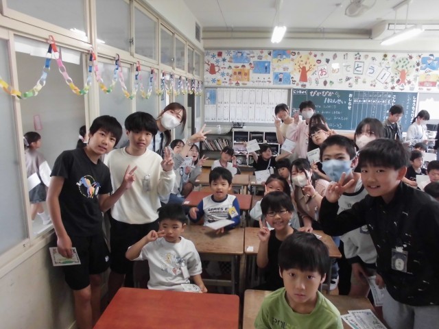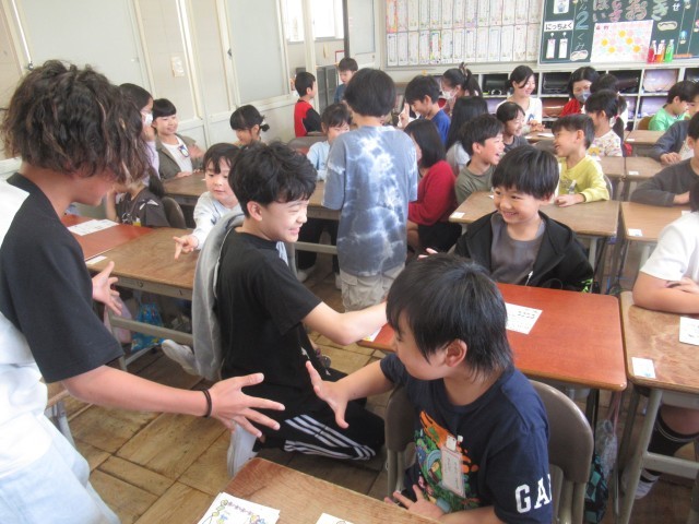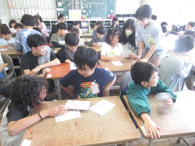 今日は、1年間お世話になる6年生のペアのお兄さん、お姉さんと名刺の交換をしました。さっそく、昼放課に外遊びに誘ってくれて、一緒に遊んでいる姿もありました。1年間よろしくお願いします。
