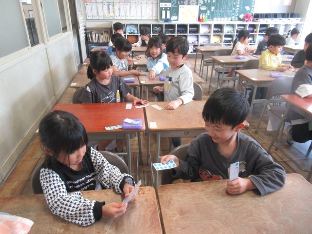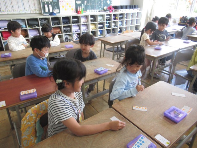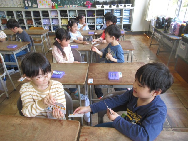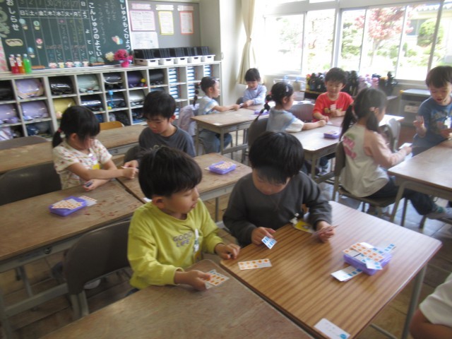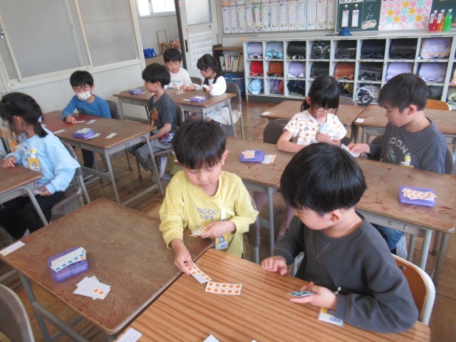 今日の算数の授業は、1から10までの数字を使ってゲームをしました。どちらが大きかを考えて楽しむことができました。