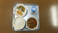 給食では、ポークカレー、ビーフカレー、チキンカレー、夏野菜カレー、根菜カレー、キーマカレー、ツナカレーなどたくさんの種類のカレーが登場します。今日は、小さなリングいかやえび、ほたてのほぐし身などをじゃがいも、たまねぎ、にんじんなどの野菜と一緒に煮込んで作った「シーフードカレー」でした。肉類を使ったカレーと違ってあっさりした味わいのカレーでしたね。