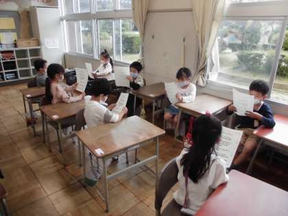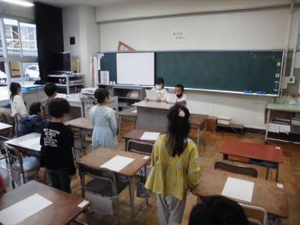 生活の授業では、「朝の会」のやり方を全員で確かめ、日直の仕事について学びました。みんな、隣の人と一生懸命練習していました。