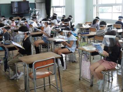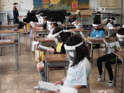 音楽の授業の様子です。コロナ対策をしながら授業を進めています。